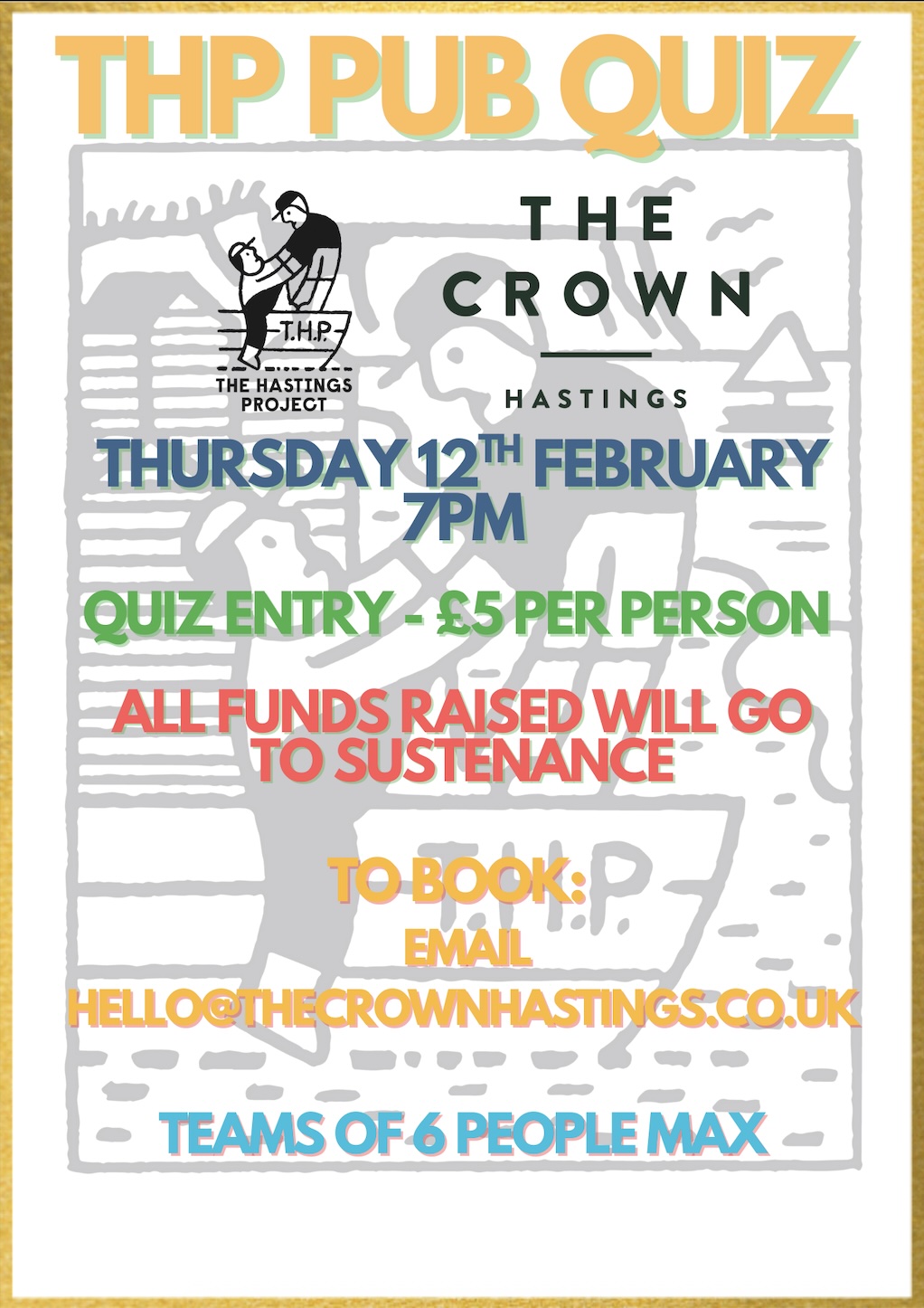 On Thursday 12th February we're teaming up with The Hastings Project to bring you a pub quiz led by Robbie and Ed.
